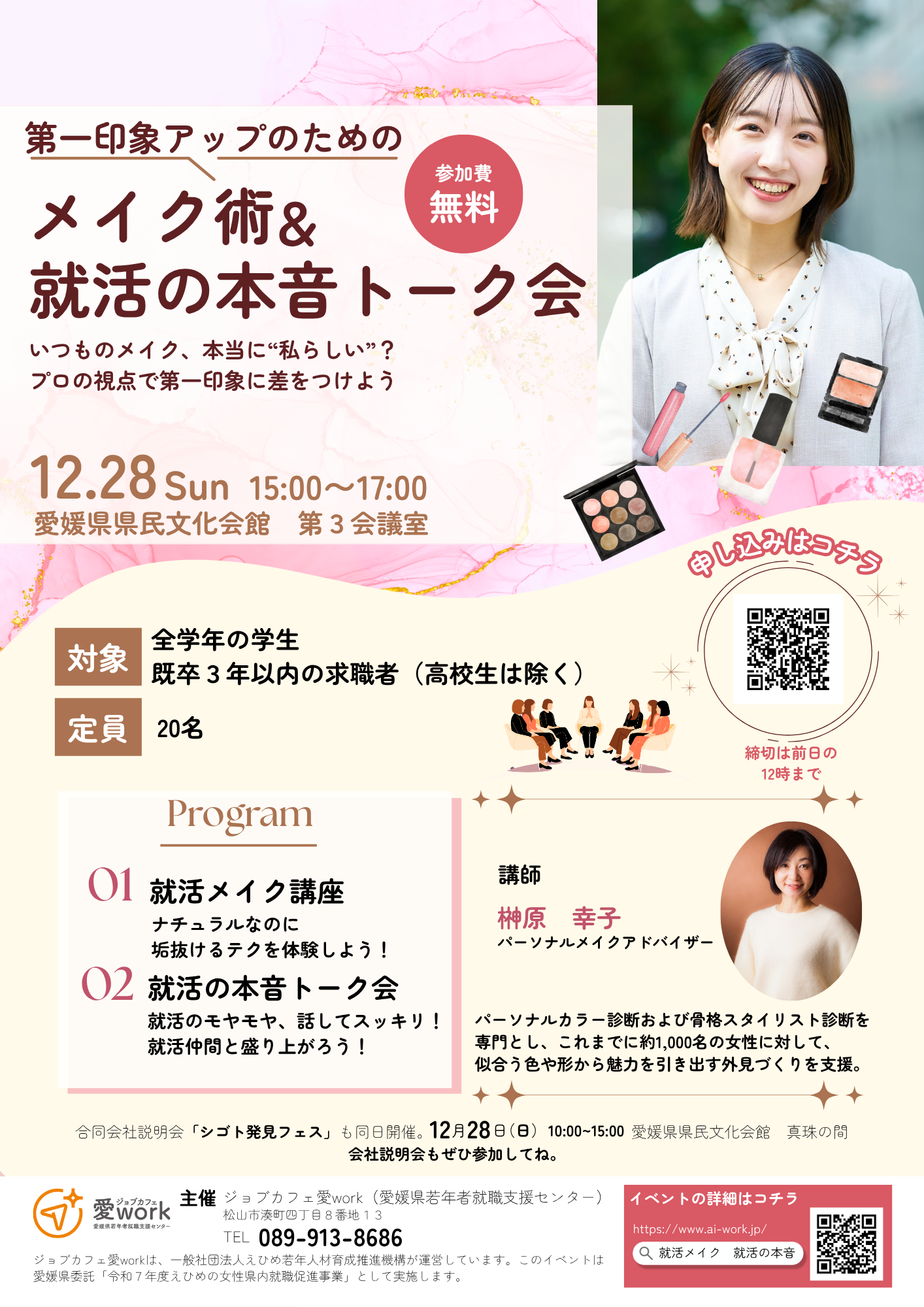 真面目な話のあとは、ちょっと気楽に。メーク&本音トーク会でゆるっと交流してみませんか。スタッフ一同、お待ちしています☆