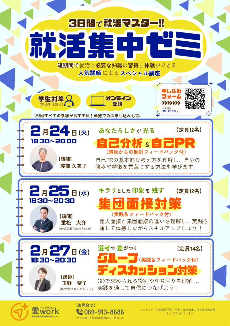 これから本格的に始まる就活に向けて、しっかり準備したいあなたに・・・人気講師から学ぶ3日間で就活の力がつくセミナー!