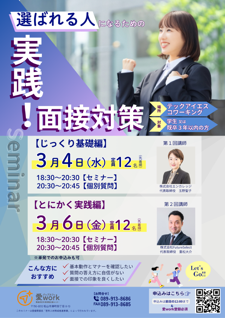 好感が持てる就活マナー、立ち居振る舞い、第一印象UPのポイントが分かります。レクチャー後に実践あり。