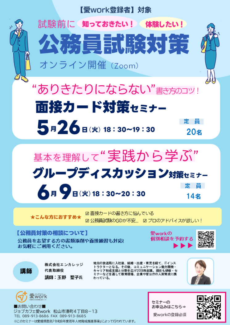 公務員試験対策にくわしい講師からアドバイスをもらえるチャンス!!バッチリ対策しましょう!!