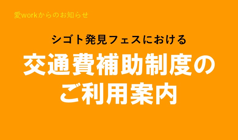一般社団法人えひめ若年人材育成推進機構(ジョブカフェ愛work)主催の愛work Challenge!「シゴト発見フェス」は、交通費補助の2回とは別枠として扱います。