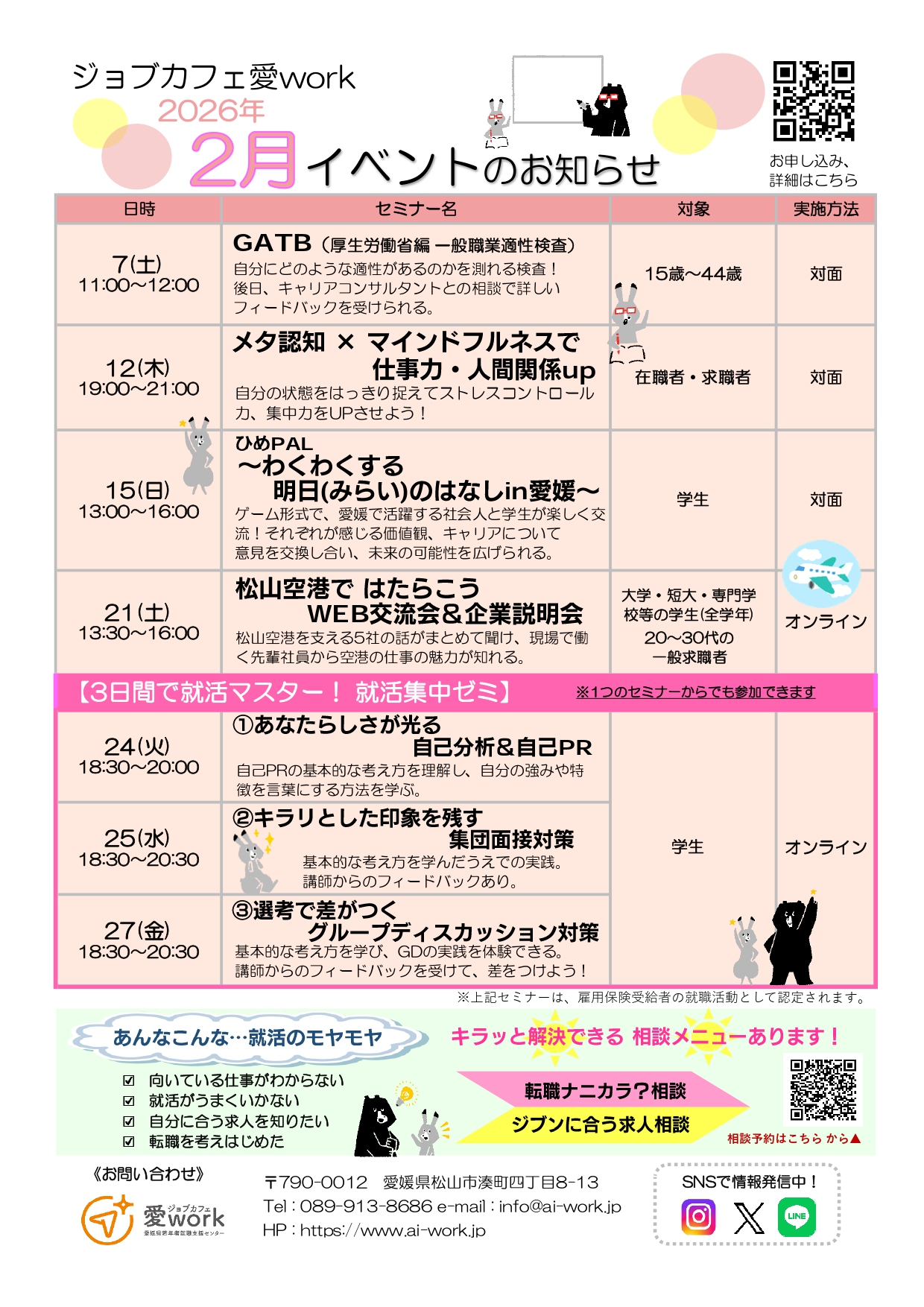 その他の愛媛県内の就職支援関連イベント・セミナー情報はここをクリック!