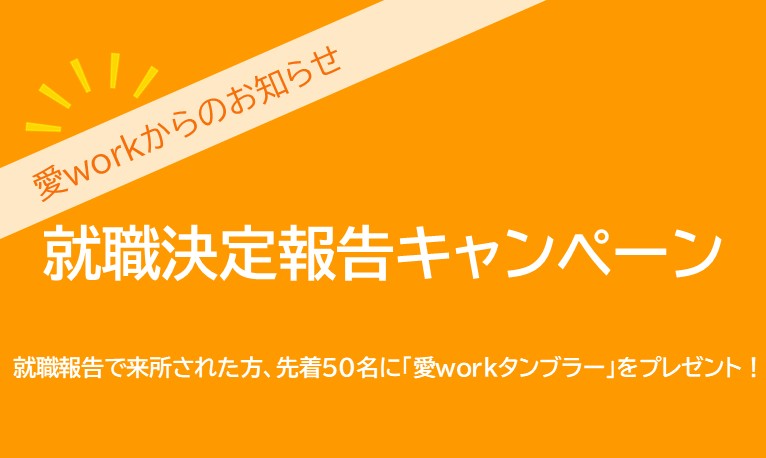 ・キャンペーン開催の有無にかかわらず、愛work利用登録者で就職決定された方は、随時ご報告をお願いします。