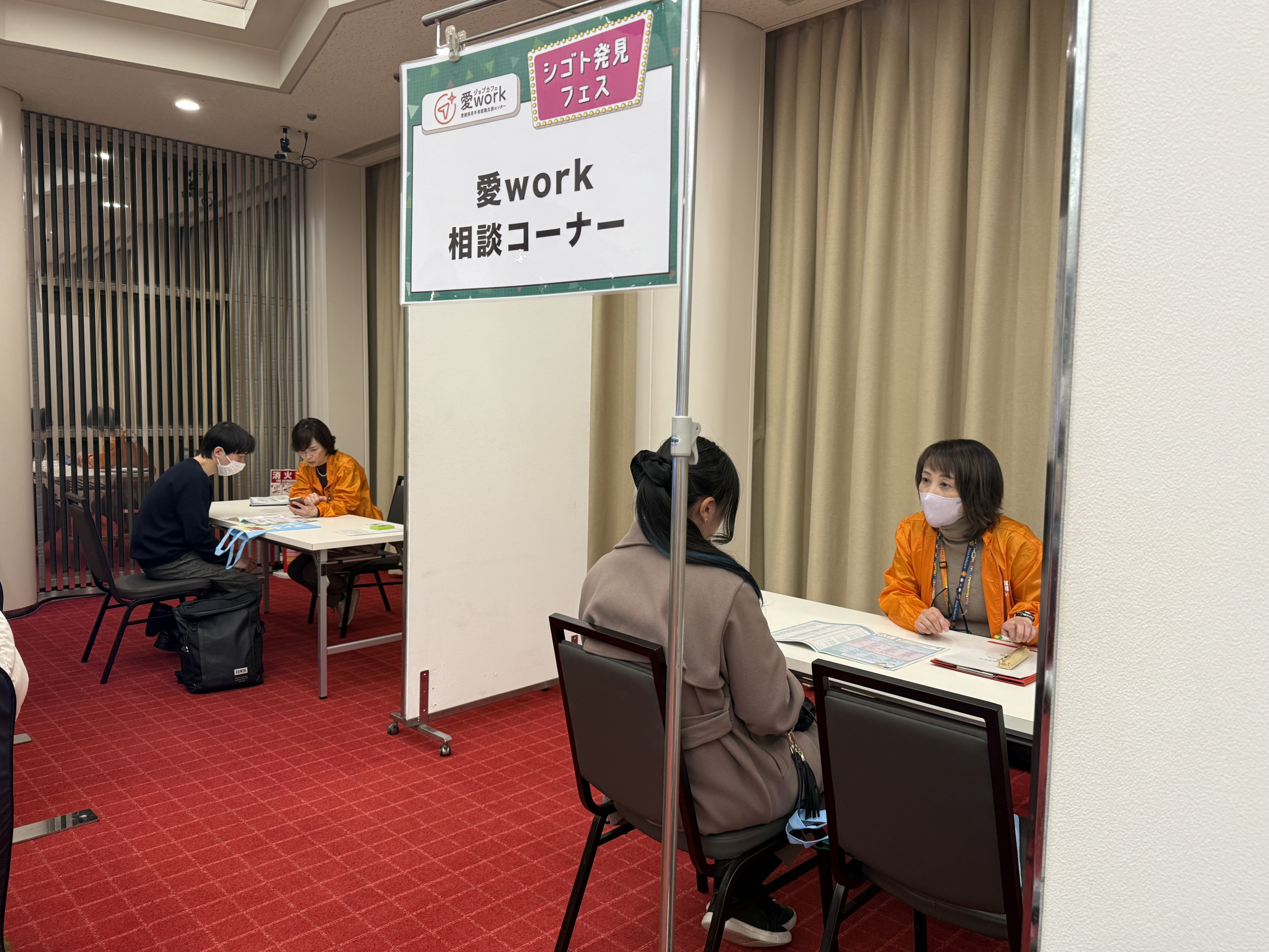 会場内にも、就活の悩みなどの企業が自分に合うかなど、気軽に相談できるコーナーを設置しました。