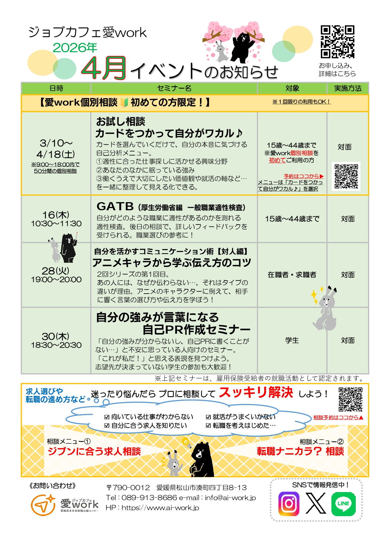 LINE友だち追加&愛work登録でイベント情報が届く!