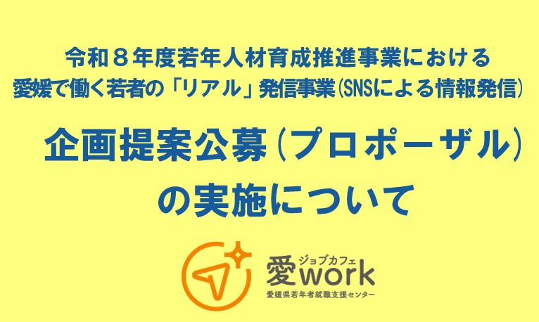 令和8年度若年人材育成推進事業における愛媛で働く若者の「リアル」発信事業(SNSによる情報発信)を委託する業者を、公募型プロポーザル方式にて募集します。